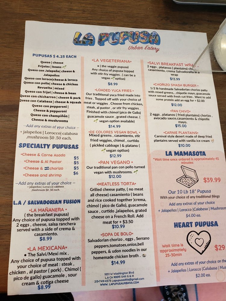 Welcome to La Pupusa Urban Eatery, a vibrant Salvadoran gem located in the heart of Los Angeles. This casual eatery offers a rich menu that embraces traditional flavors while catering to modern dietary preferences, including numerous vegan and vegetarian options.