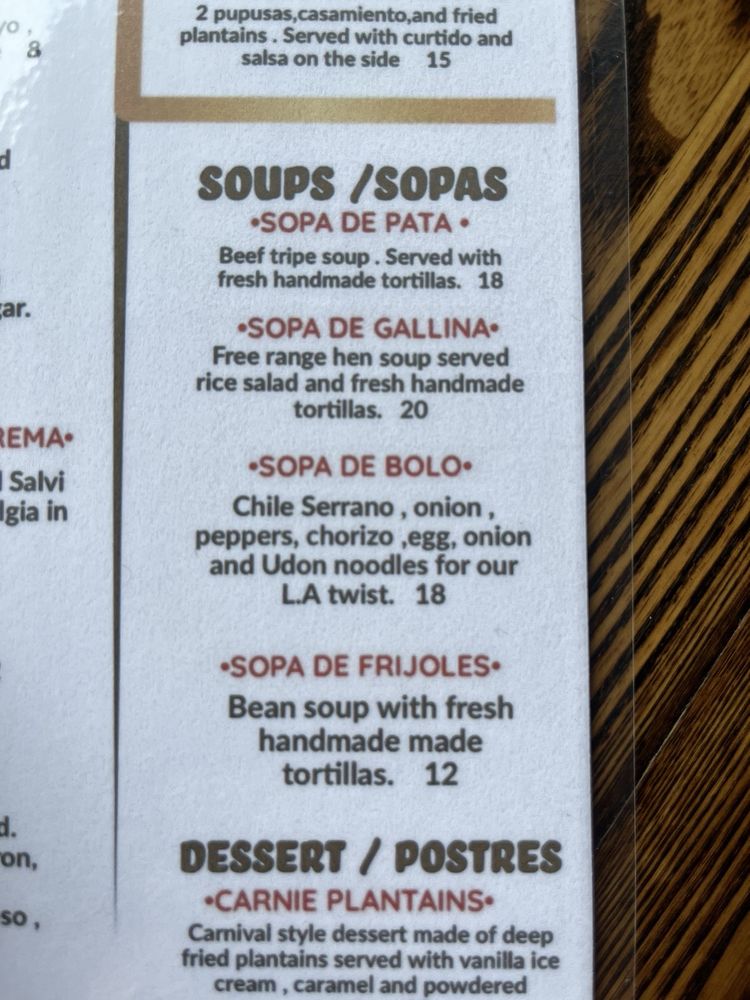 The Pupusas, starting at just $5, are a must-try—handmade and filled with a variety of ingredients that showcase the heart of Salvadoran cuisine. Don't miss the Salvadoran Breakfast Wrap and the savory Chorizo Smash Burger for a delightful blend of flavors. If you're in the mood for something comforting, the Sopa De Pata is a weekend-only treat that's worth the wait.
